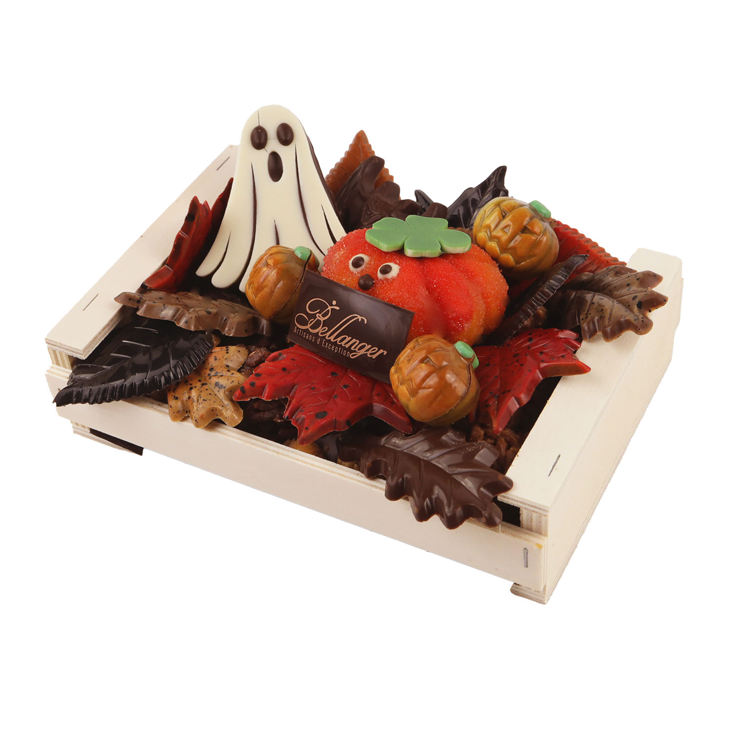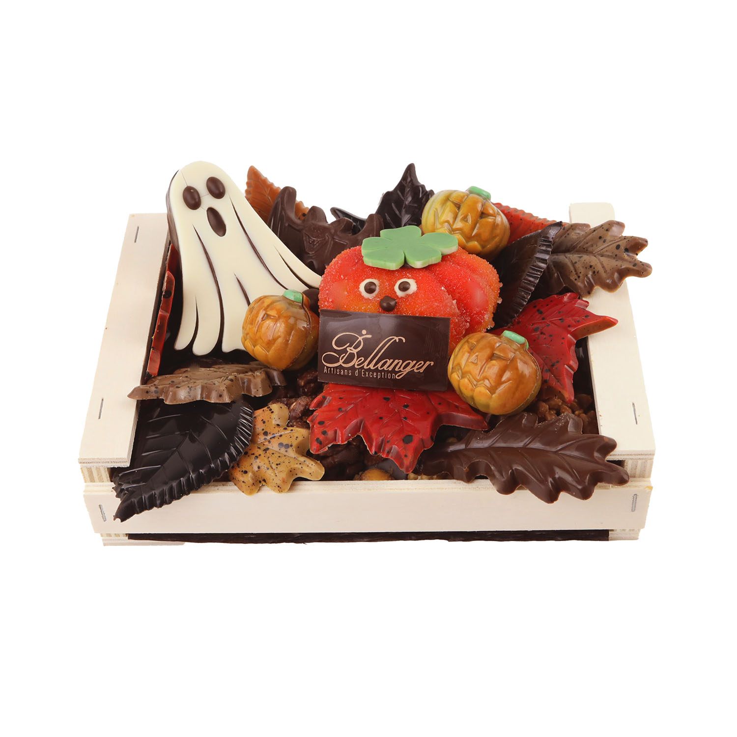 Ingrédients : Chocolat noir, Chocolat au LAIT, Chocolat blanc et Beurre de cacao : 49,36% (25,14% Teneur en cacao minimum) (fèves de cacao, sucre, beurre de cacao, émulsifiant : lécithine de SOJA, LAIT entier en poudre, extrait naturel de vanille, LAIT écrémé, lactoserum, beurre, émulsifiant : lécithine de tournesol), Pâte d'AMANDE et AMANDES : 20,67% (amande, sucre, eau, sirop de sucre inverti), Chocolat blanc : 9,18% (3,03% Beurre de cacao minimum) (sucre, beurre de cacao, LAIT entier en poudre, extrait naturel de vanille, émulsifiant : lécithine de SOJA), NOISETTES : 5,21%, Sucre et Sirop de glucose, NOIX : 2,78%, Sucre vanillé, Raisins noirs moelleux (raisin (dont huile de tournesol), eau, conservateur : E202), Eau, Graines de courges, Gianduja : 0,71% (NOISETTES, sucre, LAIT entier en poudre, beurre de cacao, fèves de cacao, extrait naturel de vanille), Fruits confits (orange, sucre, sirop glucose), Poudre de LAIT 0% MG, Riz soufflé (farine de riz), Huile de noisette, Extrait naturel de vanille (sirop de sucre de canne, extrait de vanille bourbon, grains de vanille épuisée), CRÈME liquide stérilisée UHT (CREME, épaississant : carraghénanes), Sel. Ingrédients décor en préparation à base de Chocolat au LAIT, Chocolat noir, Chocolat blanc et Beurre de cacao (sucre, beurre de cacao, LAIT entier en poudre, fèves de cacao, émulsifiant : lécithine de SOJA, extrait naturel de vanille, LAIT écrémé, lactoserum, beurre, émulsifiant : lécithine de tournesol), Huile d'olive, Denrée alimentaire colorante et Colorant (concentré de curcuma, radis, cassis, pomme, spiruline, E172, carthame, citron).
