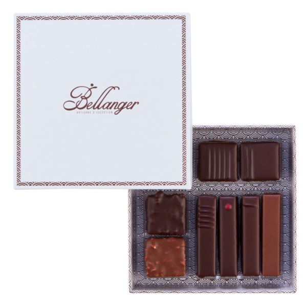 Ingrédients : Chocolat noir, Chocolat au LAIT, Beurre de cacao et Pâte de cacao : 44,97% (25,09% Teneur en cacao minimum) (fèves de cacao, sucre, beurre de cacao, émulsifiant : lécithine de SOJA, LAIT entier en poudre, extrait naturel de vanille, émulsifiant : lécithine de tournesol), Sucre et Sirop de glucose (sucre, eau), AMANDES, NOISETTES, CRÈME liquide stérilisée UHT (CREME, épaississant : carraghénanes), Purée de fruit (fruit de la passion, sucre, cassis, framboise), Chocolat blanc : 4,62% (1,52% Beurre de cacao minimum) (beurre de cacao, LAIT entier en poudre, sucre, extrait naturel de vanille, émulsifiant : lécithine de tournesol, émulsifiant : lécithine de SOJA), BEURRE (CREME pasteurisé, ferment lactique), Stabilisant : sorbitol, Biscuit (farine de BLE, sucre, matière grasse laitière anhydre, sucre du LAIT, protéines de LAIT, sel, extrait de malt, poudre à lever), Gianduja (NOISETTES, sucre, LAIT entier en poudre, beurre de cacao, fèves de cacao, extrait naturel de vanille), Eau, NOISETTES caramélisées (sucre, NOISETTES), Riz soufflé (farine de riz), Édulcorant : Dextrose, Sirop de glucose, Poudre de LAIT 0% MG, Alcool (eau, framboise, sirop de sucre, alcool, extraits naturels de menthe), Menthe, Extrait naturel de vanille et Gousse de vanille (sirop de sucre de canne, extrait de vanille bourbon, grains de vanille épuisée), Pectine, Denrée alimentaire colorante (radis, cassis, pomme, carthame, citron, spiruline, carotte, hibiscus), Huile d'olive, Fleur de sel, Émulsifiant : Lécithine de tournesol.