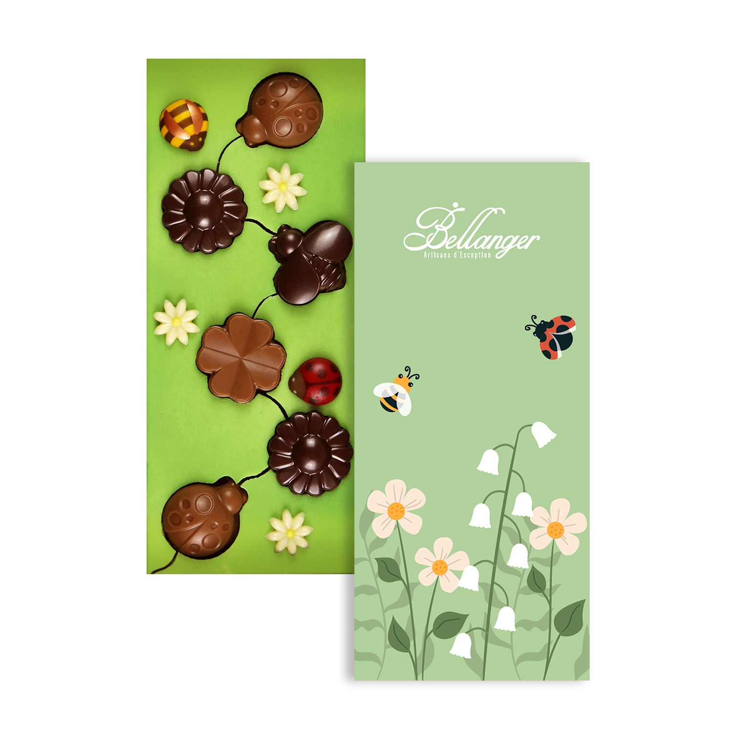 Ingrédients : Chocolat noir, Chocolat au LAIT et Beurre de cacao : 81,40% (45,71% Teneur en cacao minimum) fèves de cacao, sucre, beurre de cacao, émulsifiant : lécithine de tournesol, extrait naturel de vanille, LAIT entier en poudre, fèves de cacao de Madagascar, LAIT écrémé en poudre, extrait naturel de vanille, arôme naturel de vanille, fèves de cacao du Brésil, extrait naturel de vanille, caramel 20% (LAIT écrémé, lactosérum (LAIT), beurre (LAIT), arôme naturel), LAIT entier en poudre, émulsifiant : lécithine de tournesol. Chocolat blanc : 13,73% (4,53% Beurre de cacao minimum) (sucre, beurre de cacao, LAIT entier en poudre, extrait naturel de vanille, émulsifiant : lécithine de SOJA). Biscuit (farine de BLÉ, sucre, matière grasse laitière anhydre, sucre du LAIT, protéines de LAIT, sel, extrait de malt, poudre à lever). Décor en chocolat (chocolat blanc maigre en poudre, colorant(s) : E101, E172, denrée(s) alimentaire(s) colorante(s) : extrait de spiruline, concentré de radis, cassis et pomme). Décor chocolat (chocolat blanc (sucre, beurre de cacao, LAIT entier en poudre, arôme naturel de vanille). Décor(s) de confiserie : beurre de cacao, sucre, cacao, concentré de radis, cassis et pomme, denrée alimentaire colorante(s) : extrait de spiruline, concentré de radis, cassis et pomme. Denrée alimentaire colorante (spiruline, pomme, concentré de curcuma, carthame, citron). Fleur de sel. Huile d’olive.