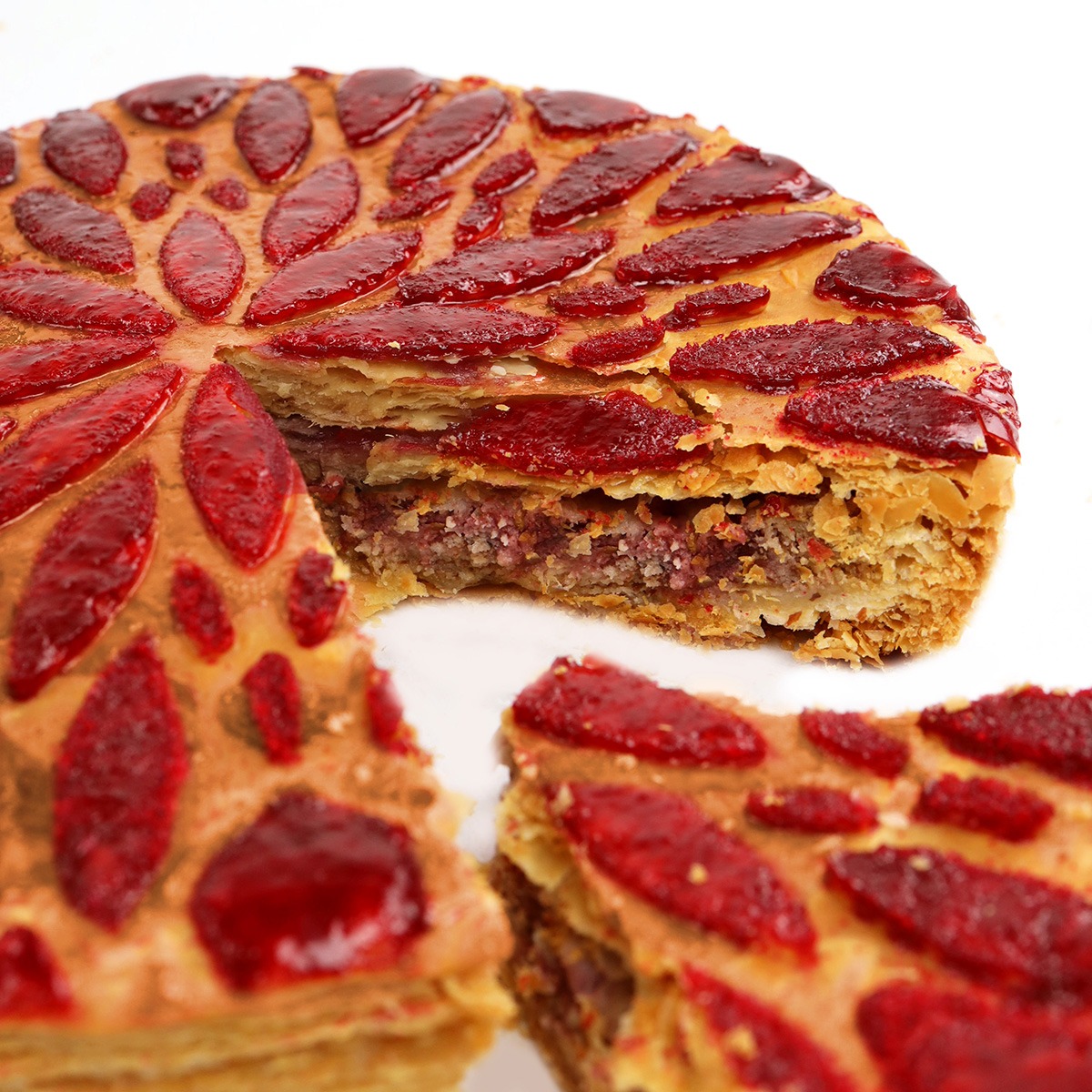 La douceur de l’amande rencontre la fraîcheur du fruit rouge dans un équilibre subtil, enveloppé d’une pâte feuilletée croustillante et dorée. Cette galette des rois artisanale, aussi élégante que gourmande, promet un moment de dégustation unique, couronné par une jolie couronne pour le roi ou la reine.
