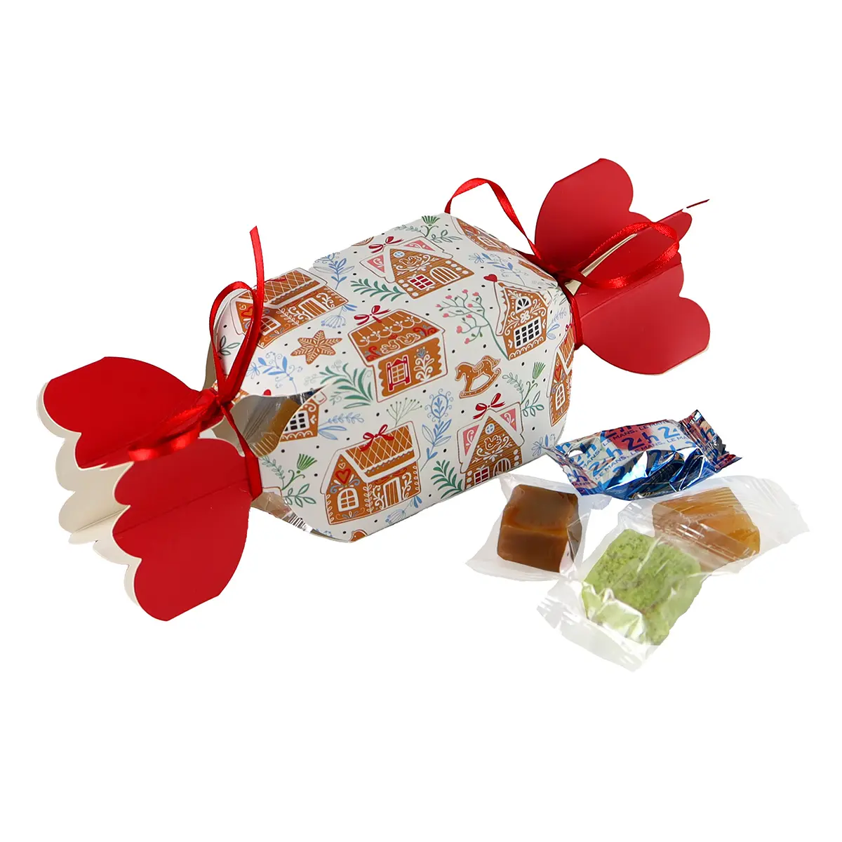Ingrédients : Sucre et Sirop de glucose (sucre, amidon), CRÈME liquide stérilisée UHT (CREME, épaississant : carraghénanes), Chocolat noir et Beurre de cacao : 9,44% (6,97% Teneur en cacao minimum) (fèves de cacao, sucre, beurre de cacao, émulsifiant : lécithine de SOJA), Purée de fruit : 8,08% (cassis, framboise, sucre, pêche, mangue, abricot, purée poire Williams, acide ascorbique, acide citrique), NOISETTES, BEURRE (CREME pasteurisé, ferment lactique), AMANDES, Eau, NOISETTES caramélisées (sucre, NOISETTES), Blanc d'OEUF et Blanc d'OEUF en poudre pasteurisé (blanc d'OEUF, stabilisants: E414, E415), Biscuit (farine de BLE, sucre, matière grasse laitière anhydre, sucre du LAIT, protéines de LAIT, sel, extrait de malt, poudre à lever), Édulcorant : Dextrose, Abricots secs (Abricot, eau