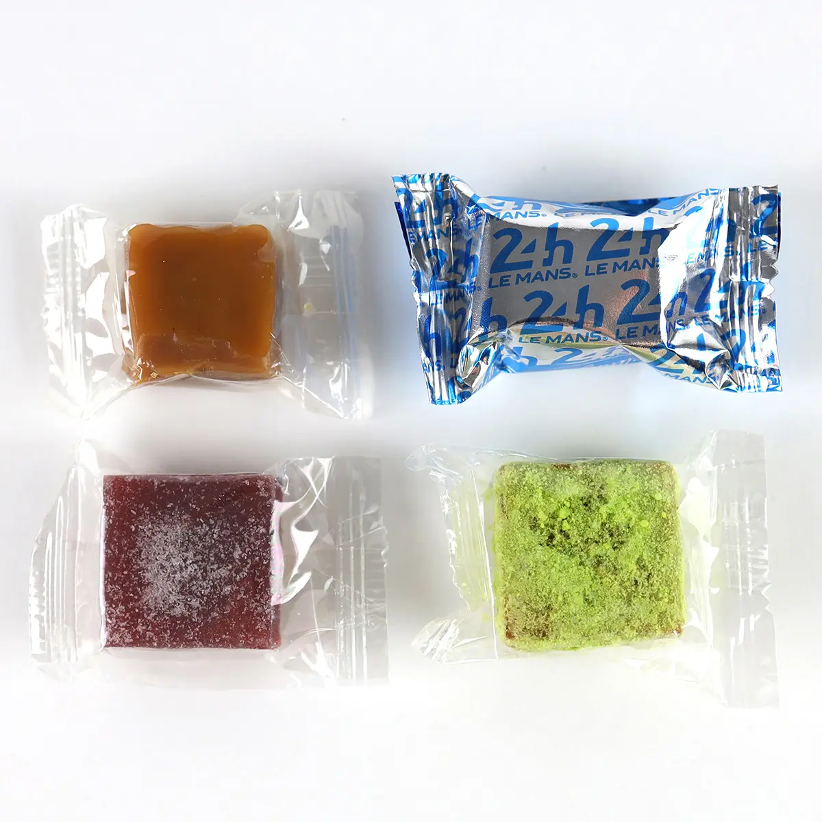conservateur : E202), Riz soufflé (farine de riz), Pectine, Fleur de sel, Extrait naturel de vanille (sirop de sucre de canne, extrait de vanille bourbon, grains de vanille épuisée), Acidifiant : Acide citrique, Colorant (bêta-Carotène, bleu patenté V).