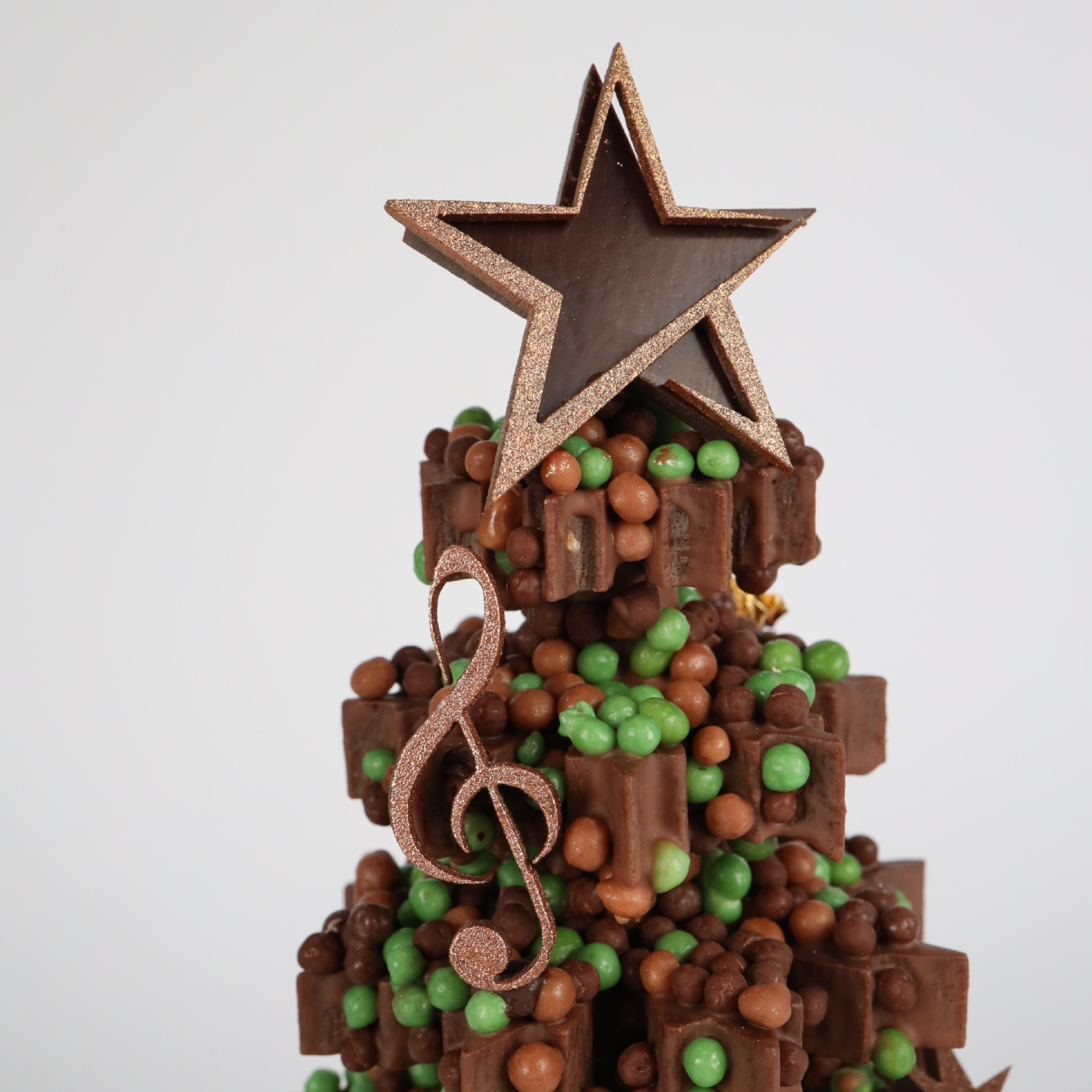 Ingrédients : Chocolat au LAIT, Chocolat noir et Beurre de cacao : 79,76% (34,06% Teneur en cacao minimum) (sucre, beurre de cacao, LAIT entier en poudre, fèves de cacao, émulsifiant : lécithine de SOJA, extrait naturel de vanille, émulsifiant : lécithine de tournesol), Riz soufflé (farine de riz), Biscuit (farine de BLE, sucre, matière grasse laitière anhydre, sucre du LAIT, protéines de LAIT, sel, extrait de malt, poudre à lever), Chocolat blanc : 5,94% (1,96% Beurre de cacao minimum) (sucre, beurre de cacao, LAIT entier en poudre, extrait naturel de vanille, émulsifiant : lécithine de SOJA), Colorant et Denrée alimentaire colorante (E555, E172, radis, cassis, pomme, spiruline, concentré de curcuma, carthame, citron), Pâte de PISTACHE (pistaches), Fleur de sel, Sirop de glucose, Eau, Huile d'olive, Alcool, Agent d'enrobage: (gomme laque, gomme arabique), Feuilles Or.