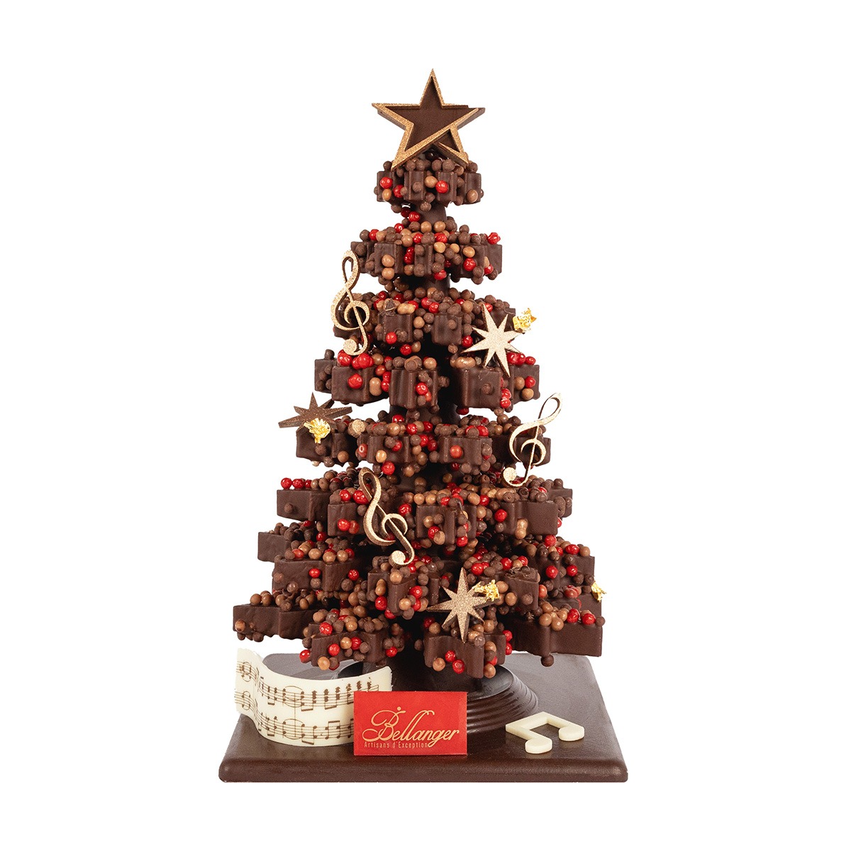 Dans l’esprit de notre collection Bellanger chante Noël, ce sapin chocolat noir s’habille de textures savoureuses, sélectionnées pour plaire à tous les amateurs de chocolat : un praliné feuilleté croustillant associé à des billes de riz soufflées, une alliance gourmande qui révèle toute la puissance et la finesse du chocolat noir.